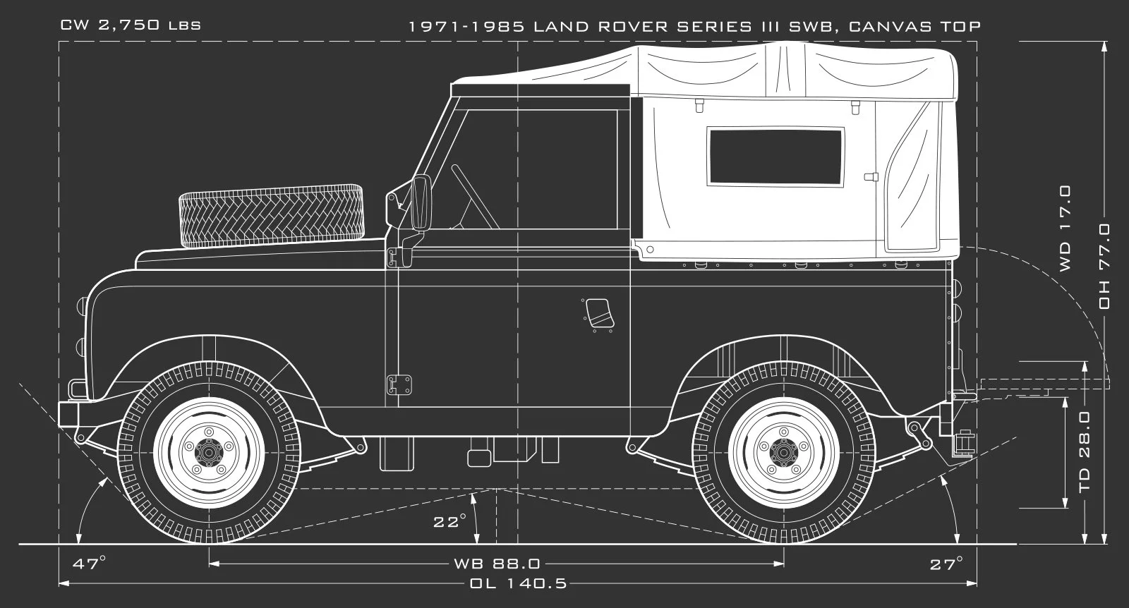 The Series III Land Rover closely followed the Series II, with the same body design and options. The main difference is the grille design, which moved the headlights to the wings and replaced the metal grille with a plastic one. The design stayed consistent thoughout the Series III production run, which saw heavy international use, particularly in Australia and South Africa.
