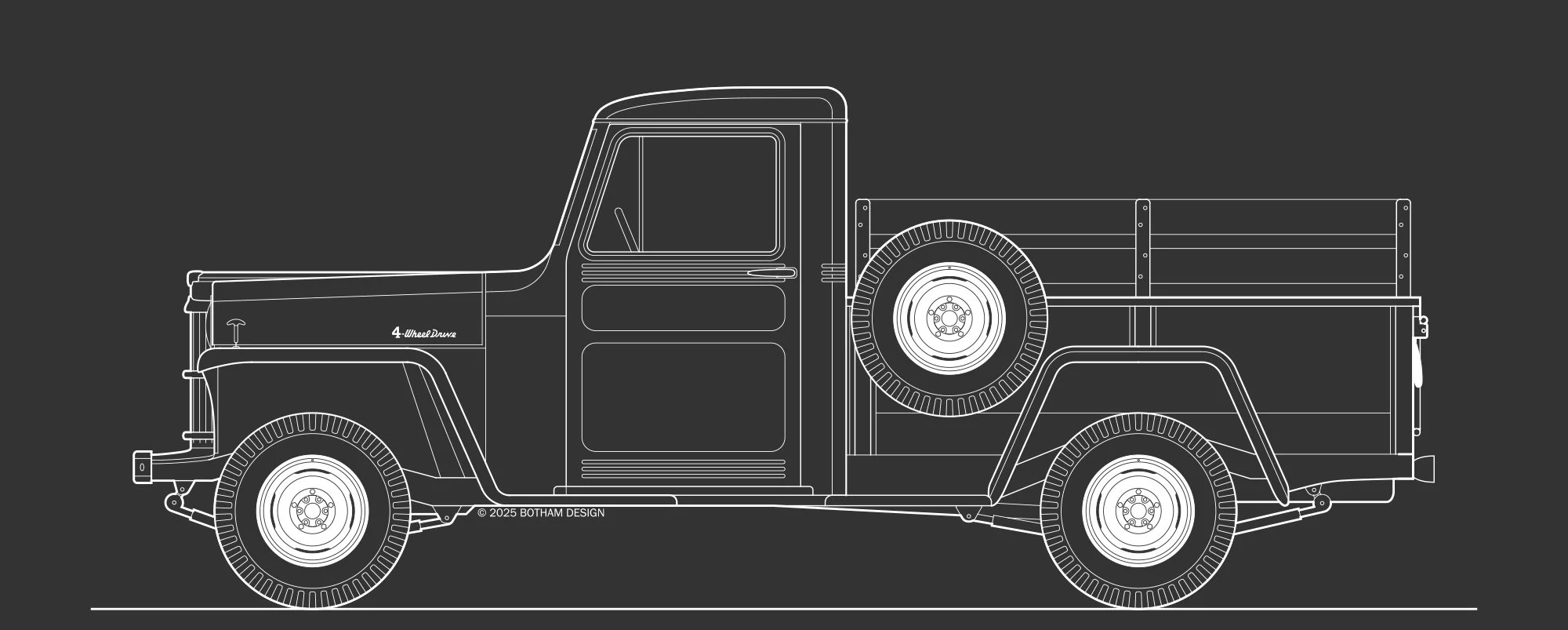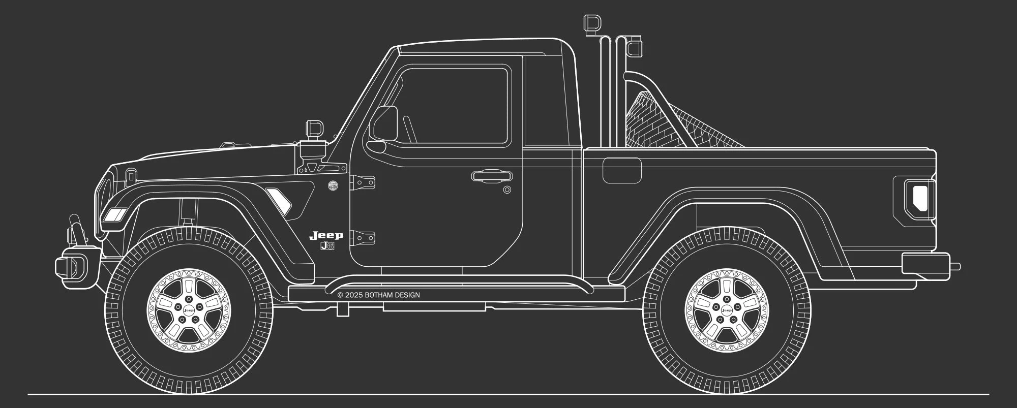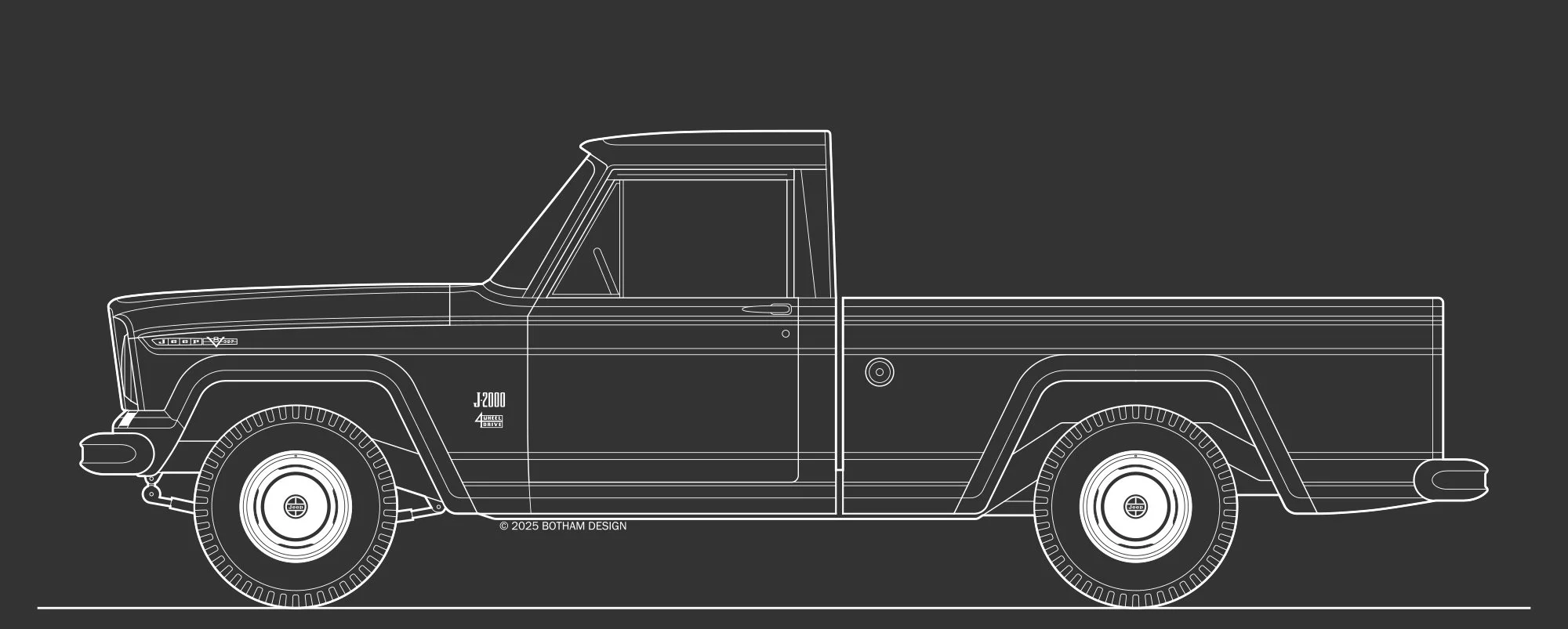 Re-designed CJ-7 with a longer wheelbase and pickup truck bed.