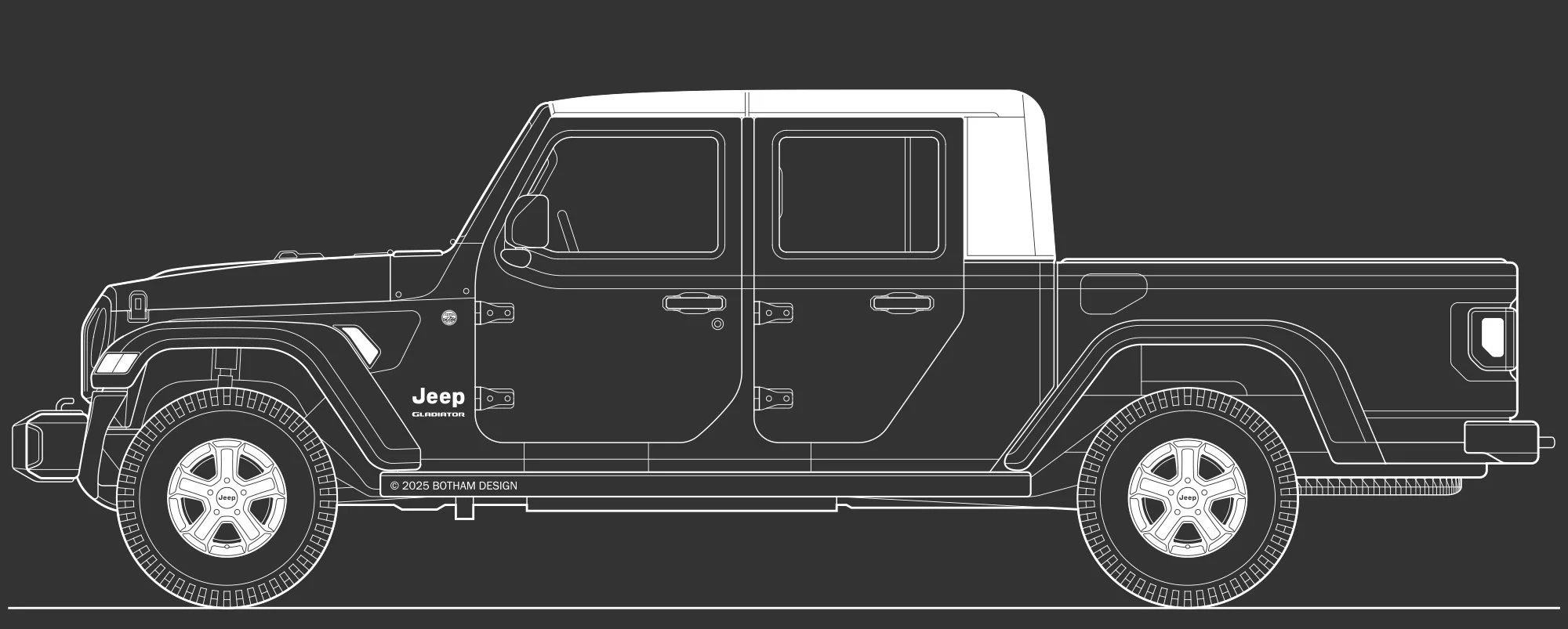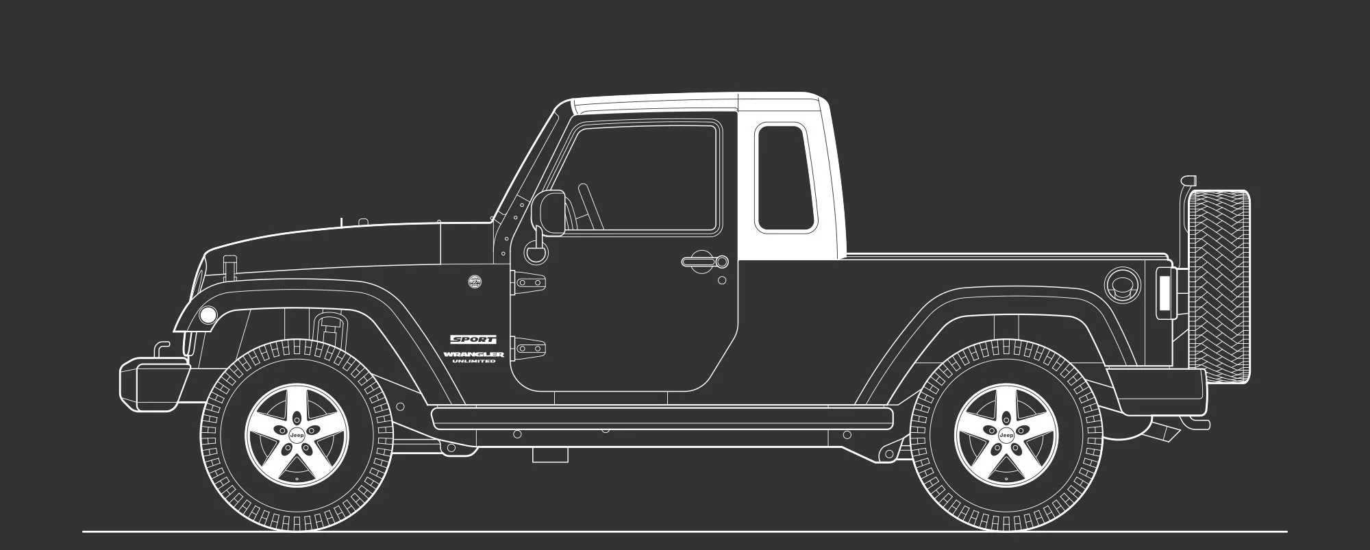 After-market kit to convert a JKU Wrangler into a pickup truck.