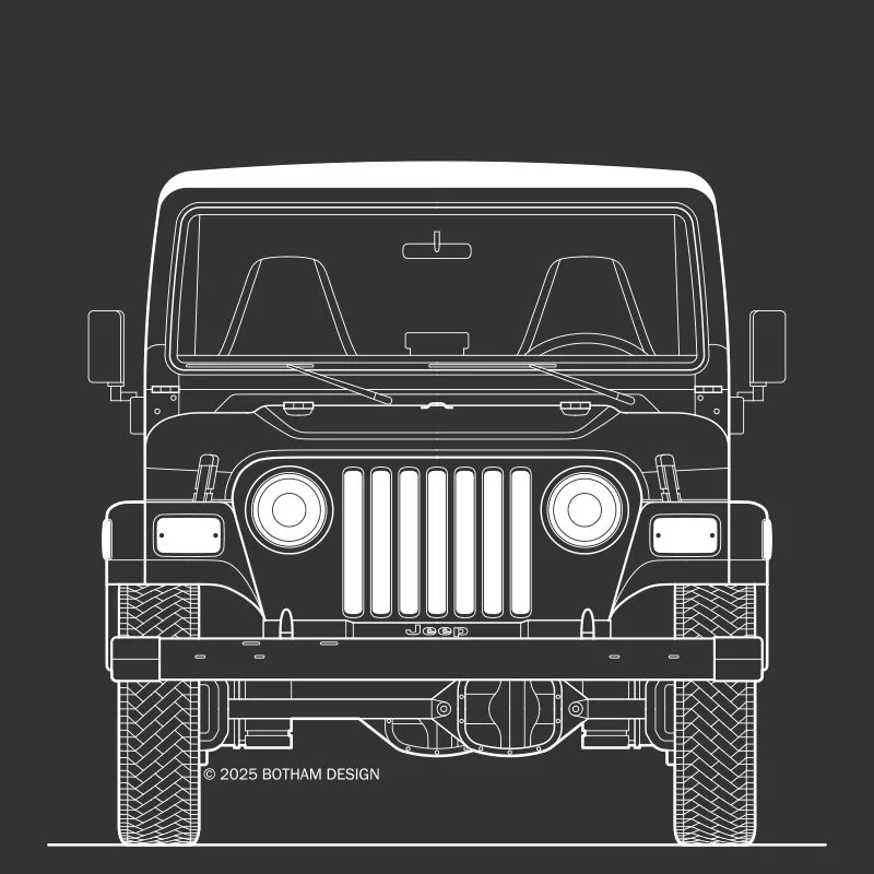 Fourth generation wrangler jeep with raked grille.