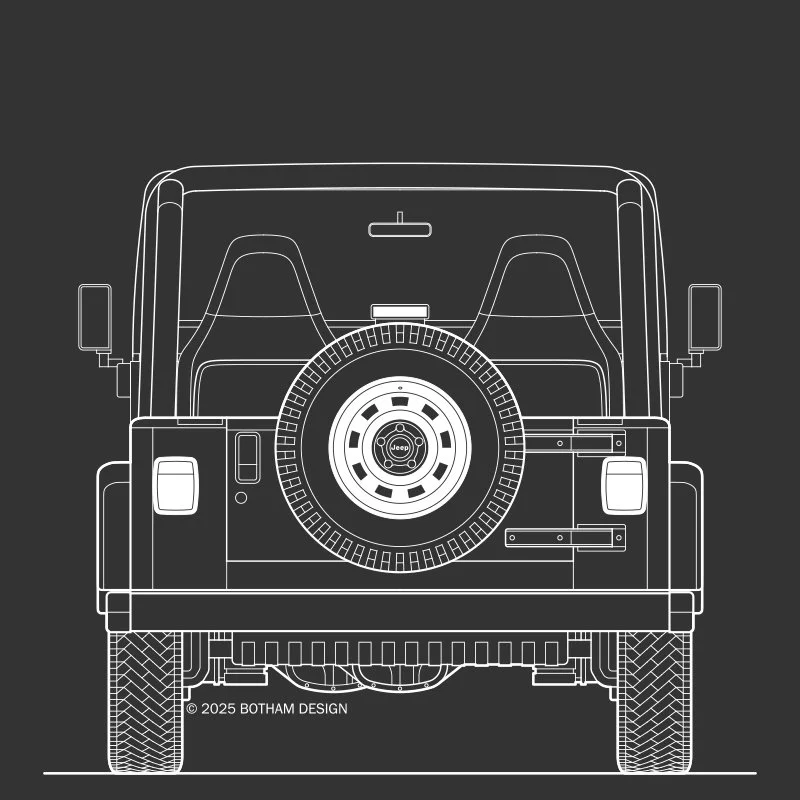 Second generation wrangler jeep with coil suspension and re-introduced circular headlights.