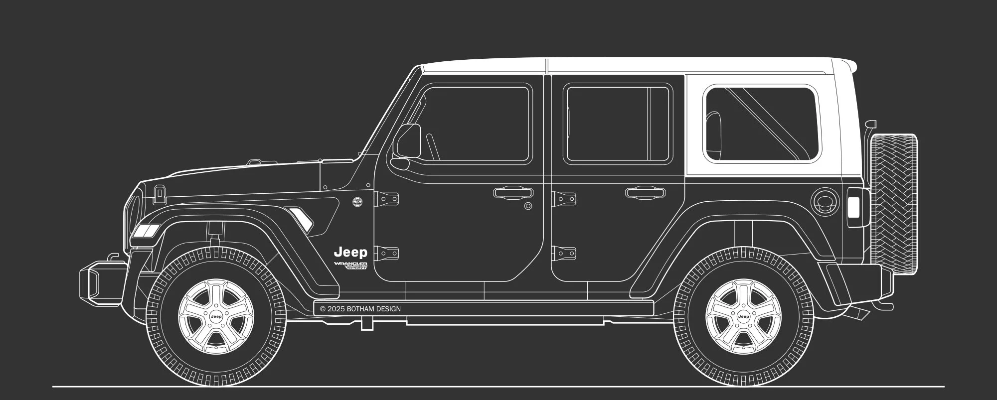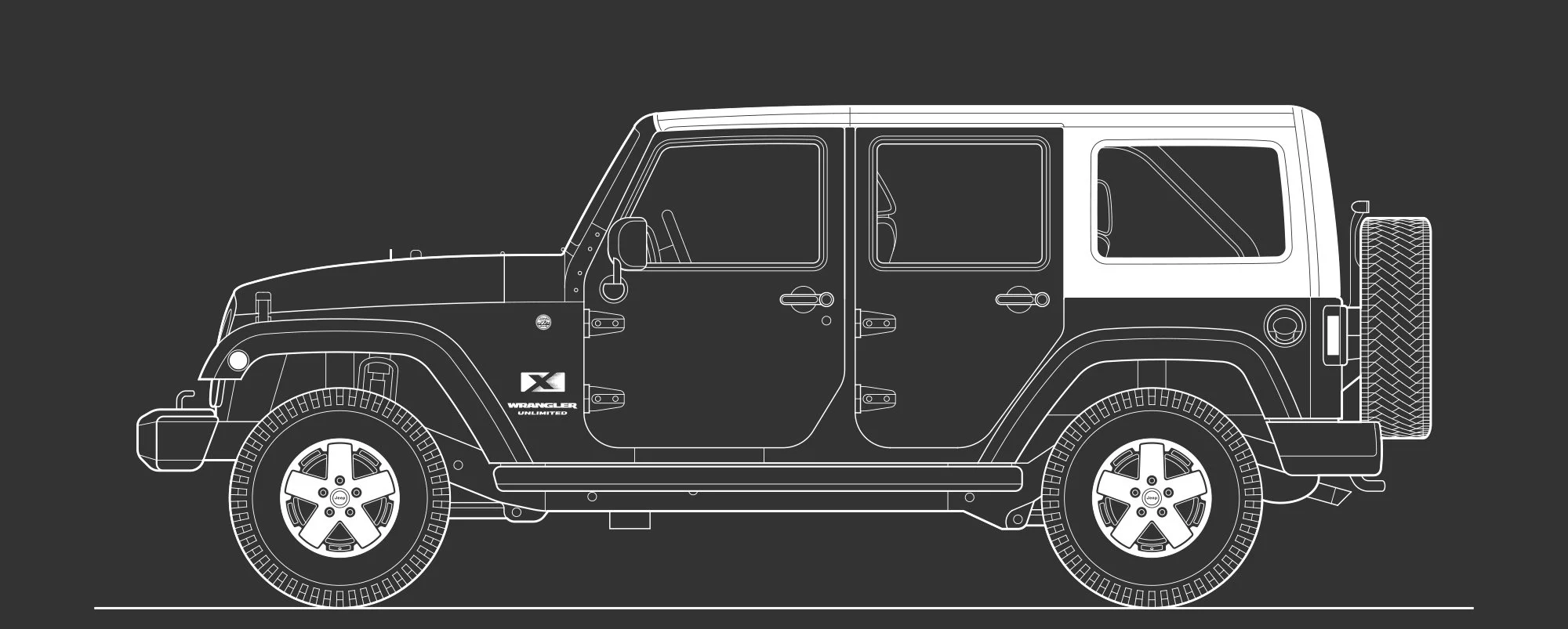 After-market kit to convert a JKU Wrangler into a pickup truck.