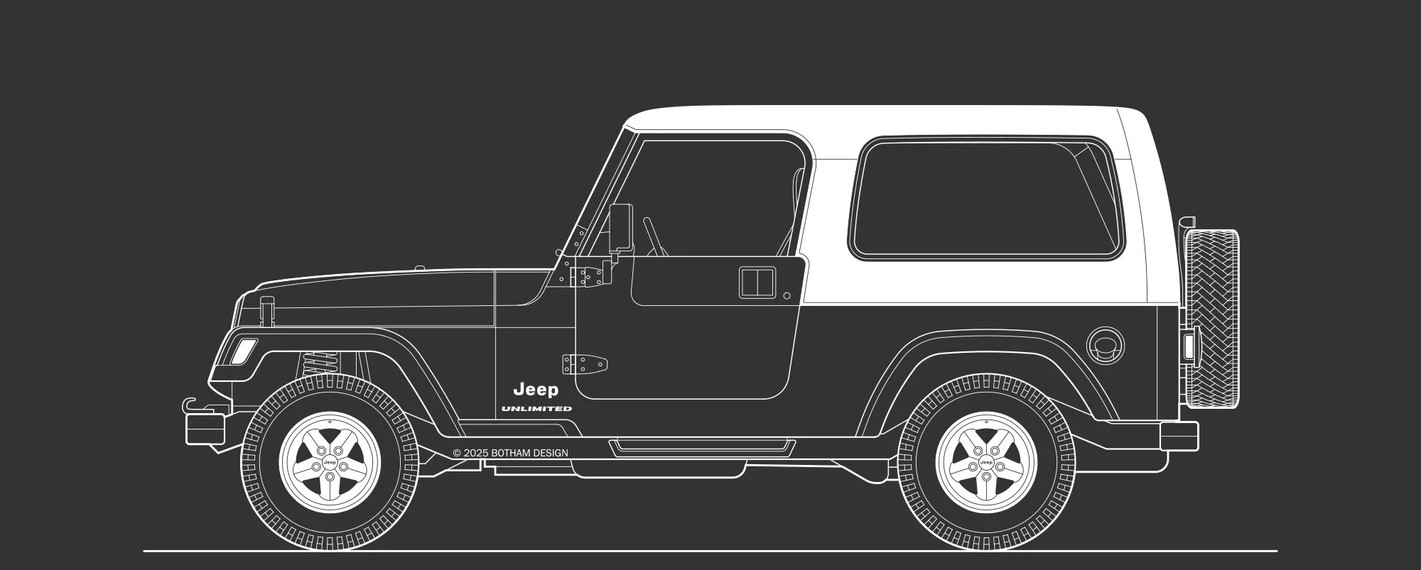 Second generation wrangler jeep with coil suspension and re-introduced circular headlights.